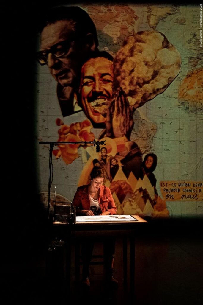 Until now, my creations, as my journey as an artist began, have been nourished by my own experiences, and by my questioning of myself. Double culture as double identity, relation to the exile, relation to maternity. So many spaces of life to be explored to draw a word to be given. These shows, “La mémoire bafouée”, and “Les yeux de ta mère”, were built on these personal researches, mine but also those of my team.
